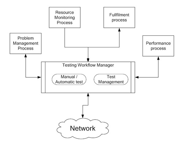 Система «МЕТРОЛОГ» в контексте модели Telecom Application Map (TAM) Задачи тестирования, измерений, анализа и диагностики РЕСУРСОВ (телекоммуникационных объектов и сетей) являются составными задачами в иерархии задач прикладных систем Telecom Applications Map (ТАМ), и важными элементами для построения эффективной системы эксплуатации, системы контроля и обеспечения качества предоставления услуг и обслуживания клиентов. Задачи тестирования входят как отдельные задачи в Процессы управления Ресурсами (Resource Process Management (Workflow / Integration)) общего Домена Управления Ресурсами (Resource Management Domain). Структура задачи - Процессы управления Ресурсами (Resource Process Management (Workflow / Integration)) представлена на рисунке: Структура задачи Процессы управления Ресурсами За тестирование отвечает задача Управление Тестированием Ресурса (Resource Testing Management). Задачи прикладных систем тестирования ресурсов фокусируются на обеспечении того, чтобы разные ресурсы нормально работали. Данные задачи являются частью процессов Выполнения и Обеспечения. В процессах Выполнения, задачи тестирования ресурсов несет ответственность за обеспечение того, чтобы соответствующий сервис работал как положено, а со стороны Обеспечения - задачи тестирования ресурсов отвечают за изоляцию (определение) повреждений и их устранение. Данные задачи (прикладные системы) также интерфейсно выступают, как части процессов тестирования, в процессах контроля за неисправностями и авариями (trouble process), которые могут запускать автоматические тесты. Ниже приведен пример потоков задач тестирования: Пример потоков задач тестирования Ниже приведены некоторые из возможностей прикладных систем тестирования: - Механизм поддержка процессов и правил тестирования (Work flow and Rules Engine Testing)